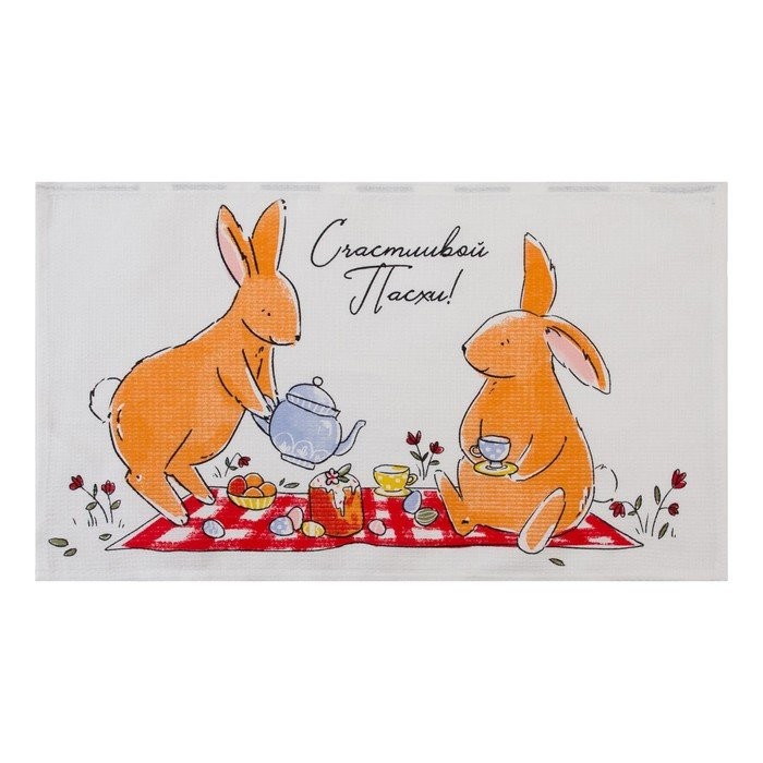 Набор кухонных полотенец Доляна «Пасхальные зайчики», 35х60см-2 шт, 100% хл, вафля 160 г/м2