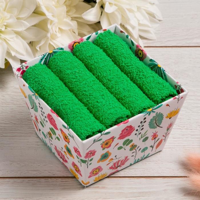 Набор махровых салфеток «Цветочный сад» 30×30 см -4 шт, 100% хл, 340гр/м2