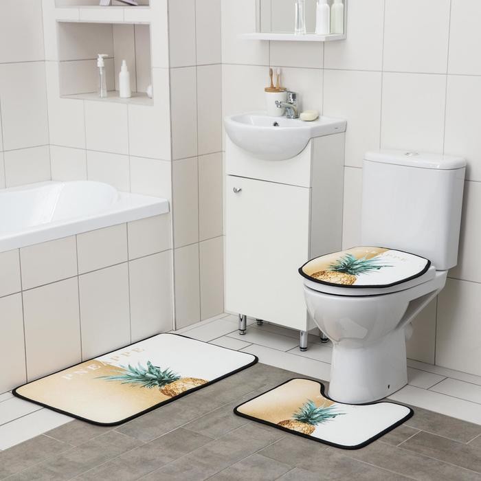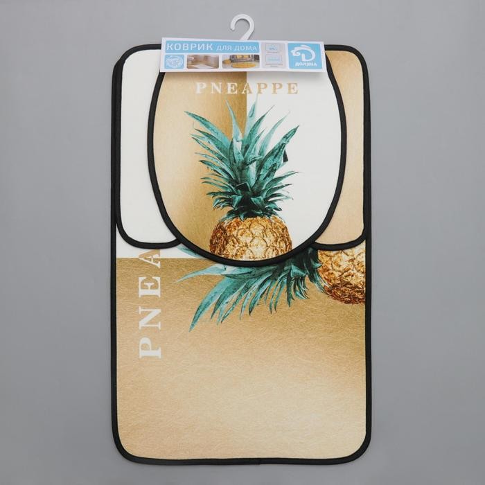 Набор ковриков для ванны и туалета Доляна «Ананас», 3 шт: 50×80, 45×50, 38×43 см