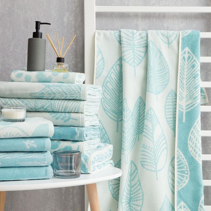 Полотенце махровое Этель Foliage бирюза, 70×130 см, 100% хл, велюр, 420 гр/м2