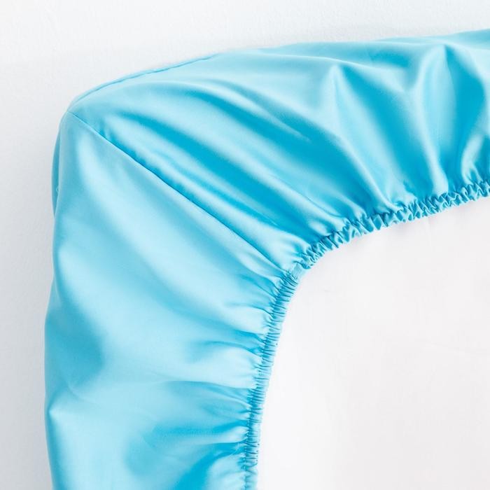 Простыня на резинке Этель 160*200*25 см, цв. голубой, 100% хлопок, мако-сатин, 128 г/м²