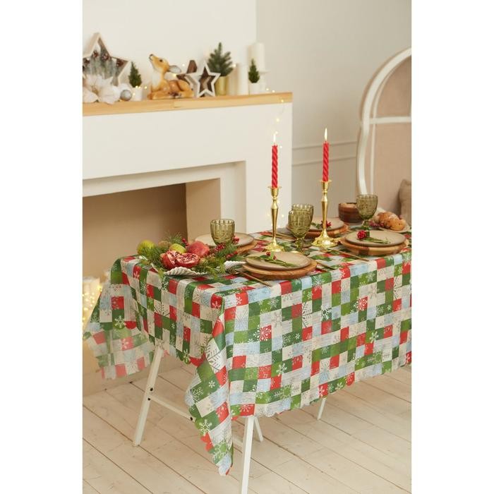Скатерть Доляна «Новый год: Новогодняя мозаика» 145*300 +/- 2 см, 100% п/э