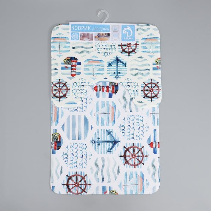 Набор ковриков для ванны и туалета Доляна «Морской», 2 шт: 50×80, 40×50 см