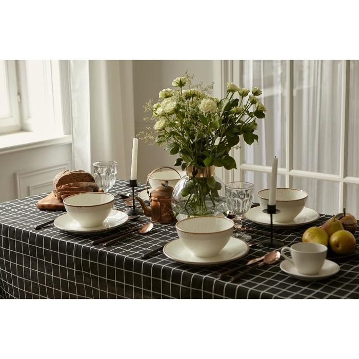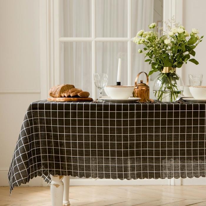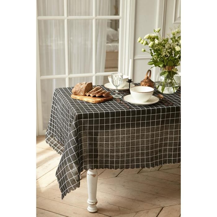 Скатерть Доляна «Клетка"цв.черный 145×200±3см,100%пэ, рогожка 130 гр/м