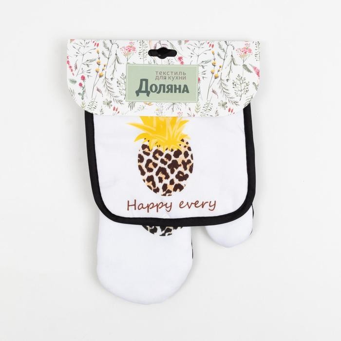 Кухонный набор Доляна Happy every прихватка 17*17 см, варежка-прихватка 26*16 см, 100% п/э
