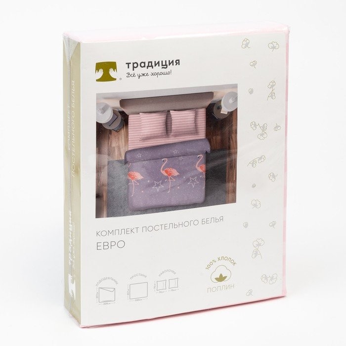 Постельное бельё «Традиция: Фламинго», евро, 200×217, 220×240, 70×70 — 2 шт.