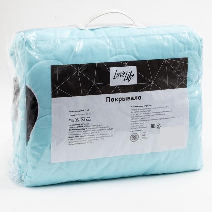 Покрывало LoveLife 1,5 сп «Голубые сердца», 145*210 см,100% п/э, микрофибра