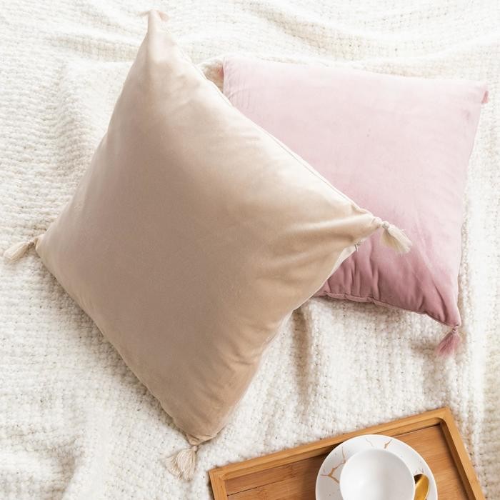 Наволочка на подушку с кисточками Этель цвет розовый, 45×45 см, 100% п/э, велюр
