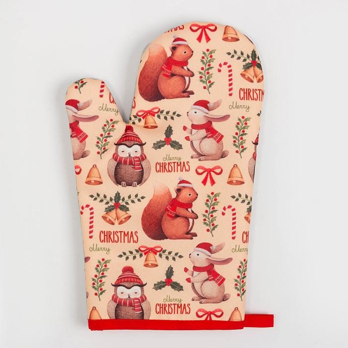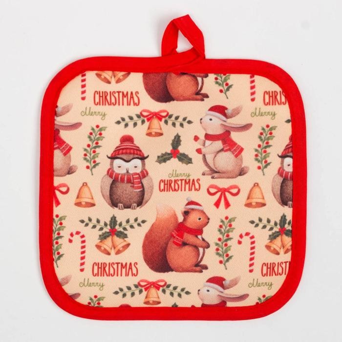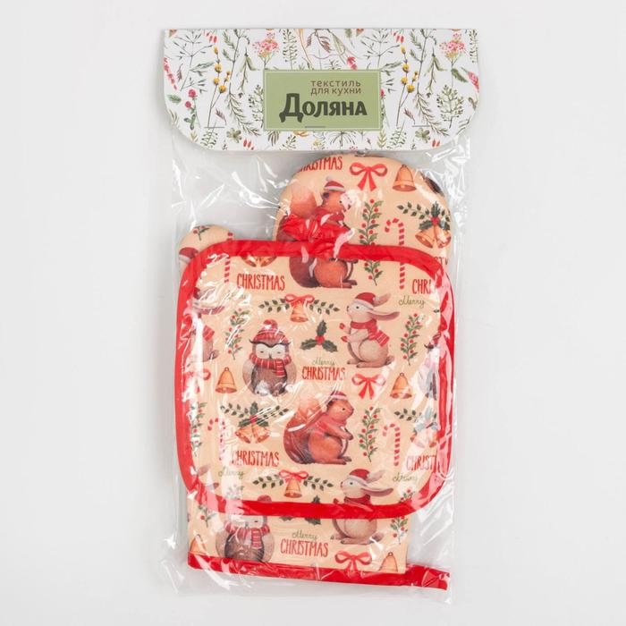Кухонный новогодний набор Доляна «Christmas», прихватка 17*17 см, варежка 26*16 см,100% п/э