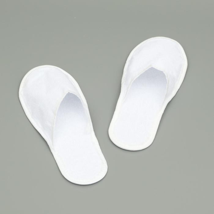 Одноразовые тапочки, 42 размер, махровые, эконом, белые, закрытый мыс