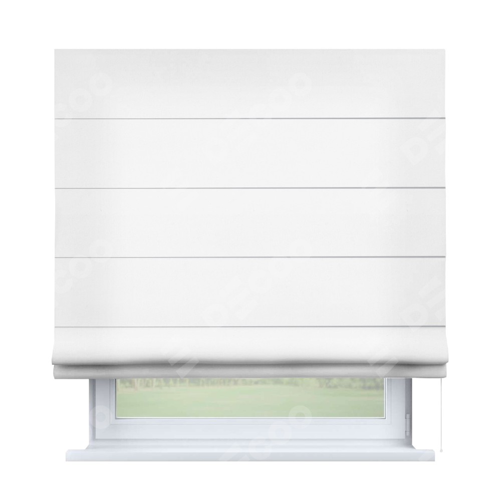 Римская штора производителя «Cortin», используется для проёма, пошита из ткани вельвет белый, артикул ткани 10810. Имеет универсальный механизм и подходит для монтажа: на потолок, на стену и в нишу.