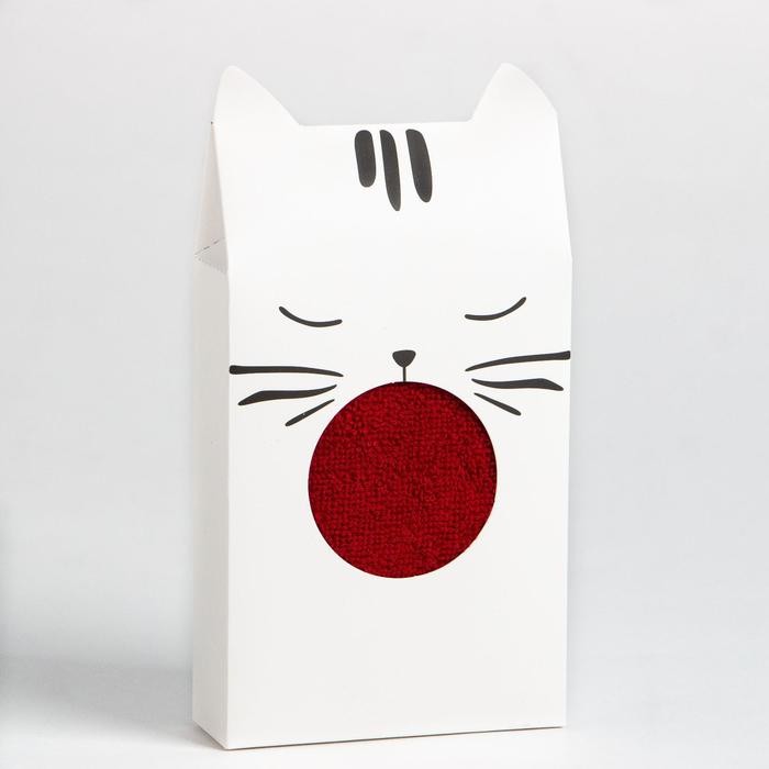 Полотенце подарочное Экономь и Я «Новый год: Котик» 30*60 см, цв.бордовый, 100% хл, 320 г/м2
