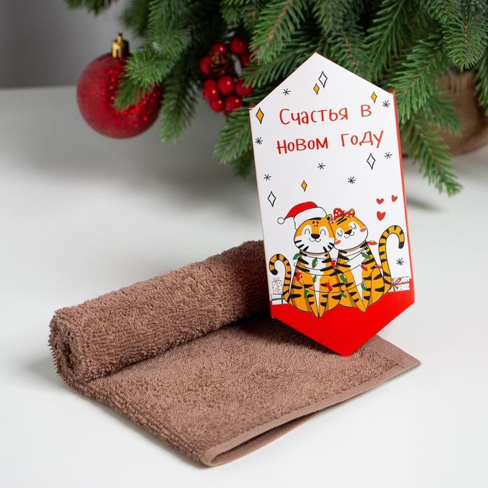 Новогоднее полотенце махровое Этель «Счастья в Новом году» 30×30 см, 100 хл 340г/м2