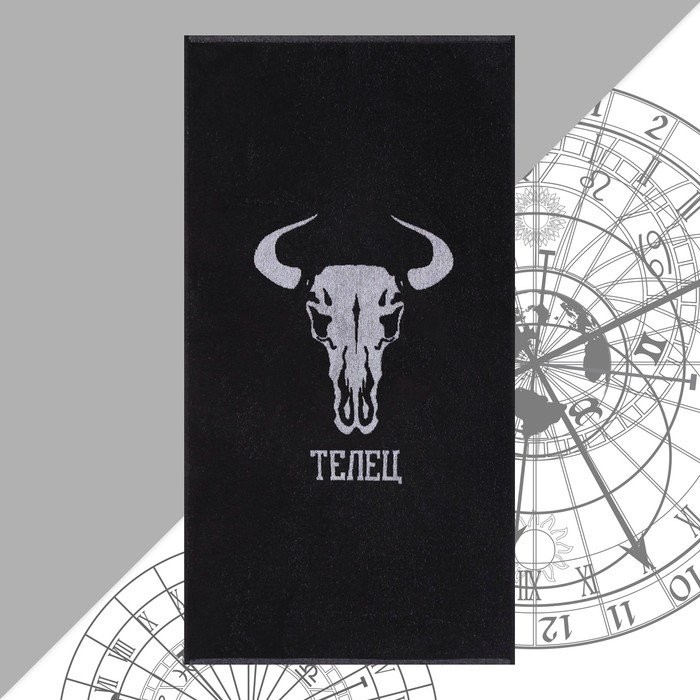 Полотенце махровое Этель «Знаки зодиака: Телец» чёрный, 67×130 см, 420 гр/м2, 100% хлопок