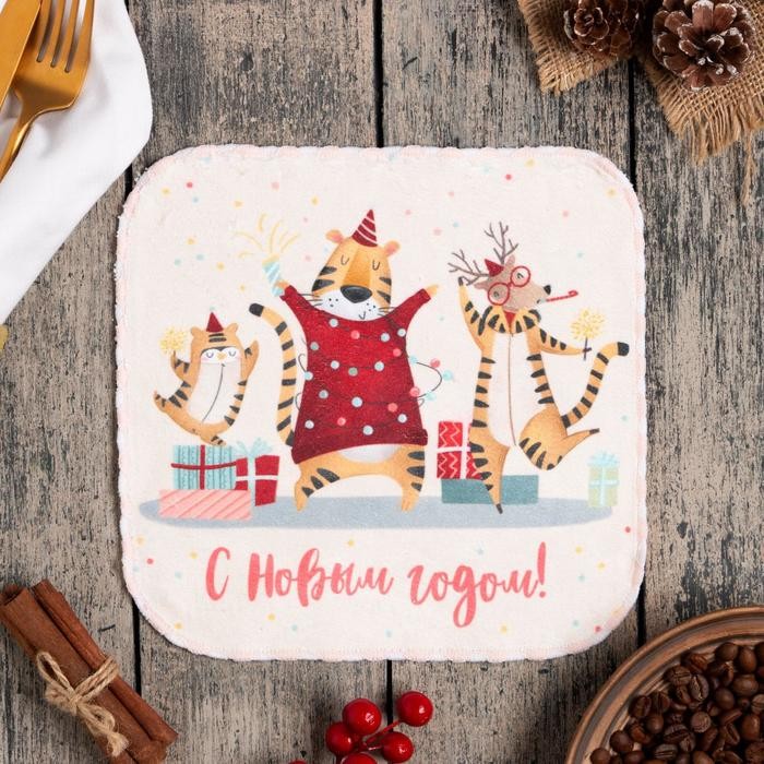 Новогодняя салфетка для уборки «С Новым Годом!», 20×20 см, п/э