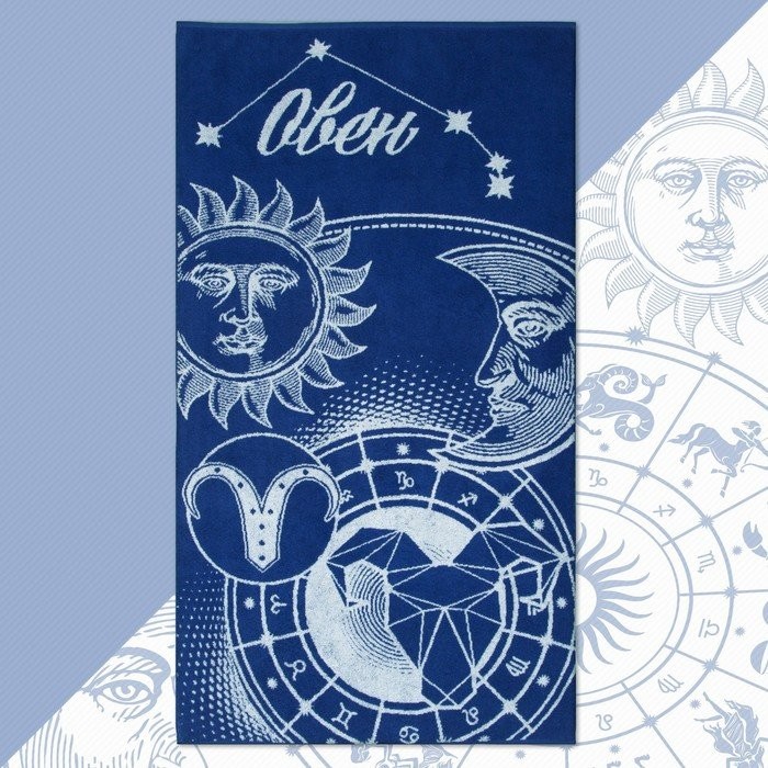 Полотенце махровое Этель «Знаки зодиака: Овен» синий, 67×130 см, 100% хлопок, 420гр/м2