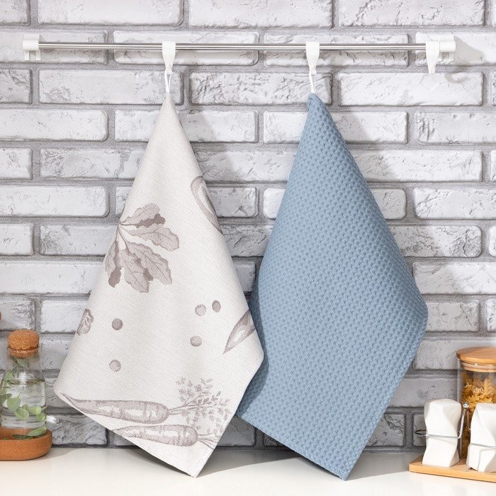 Набор полотенец «Этель» Обед 40×60 см — 2 шт., цвет серый, 100% хлопок