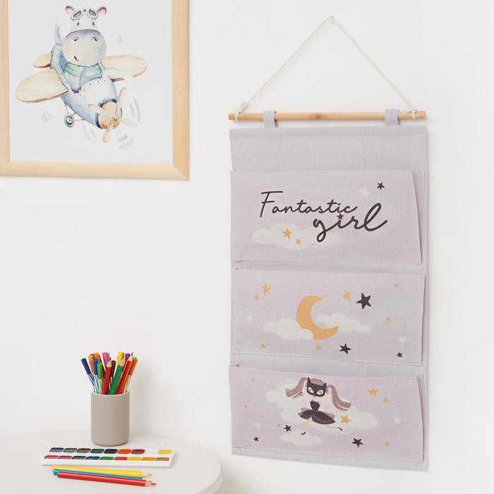 Кармашек текстильный Этель «Fantastic girl», 3 отделения, 34*63,5 см