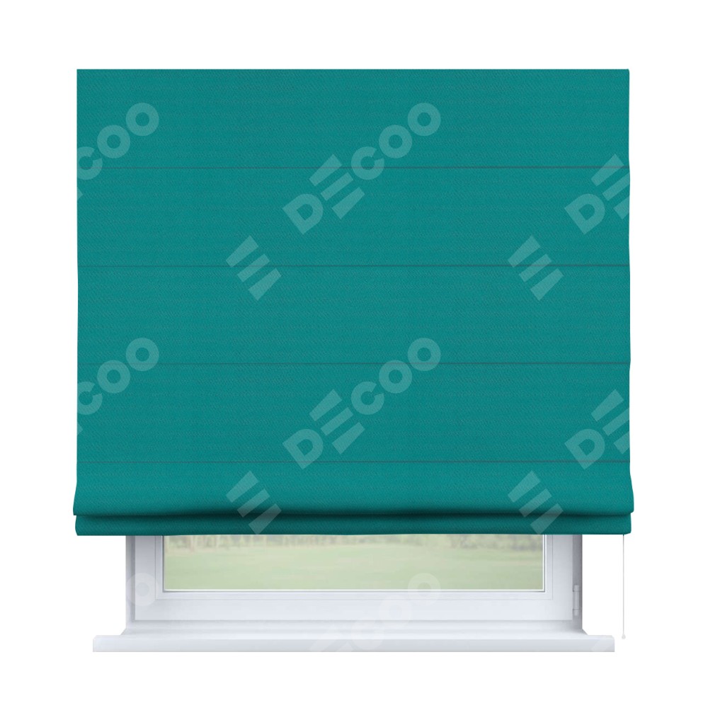 Римская штора производителя «Cortin», используется для проёма, пошита из ткани блэкаут однотонный бирюзовый, артикул ткани 88297. Имеет универсальный механизм и подходит для монтажа: на потолок, на стену и в нишу.