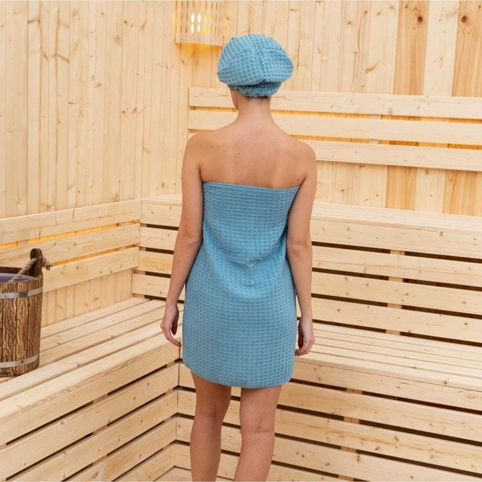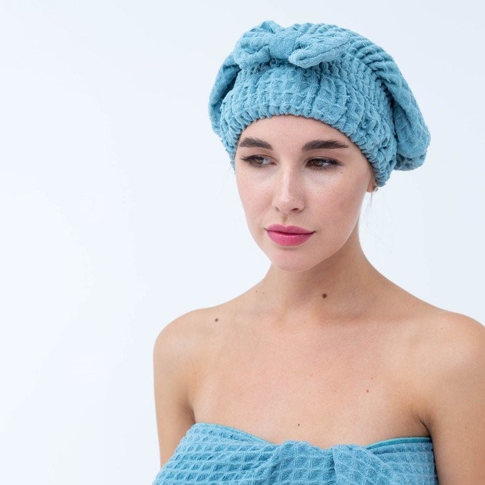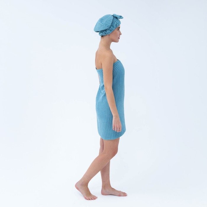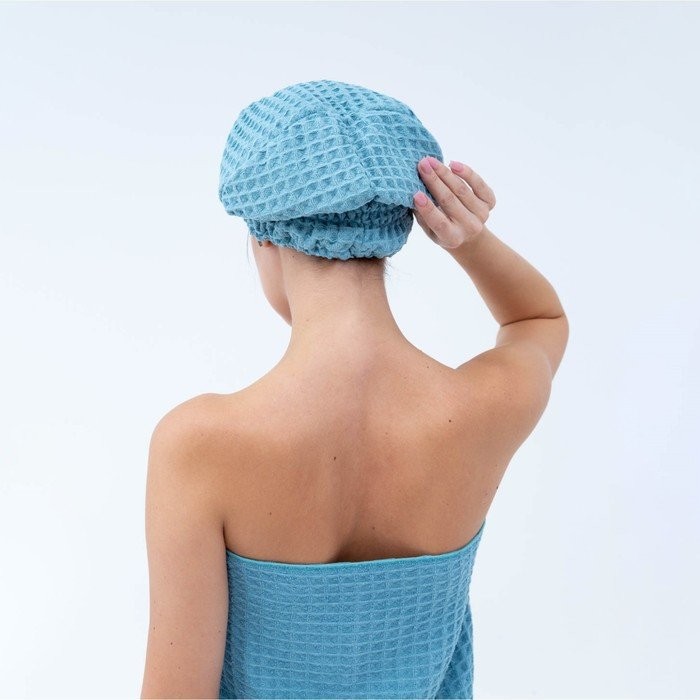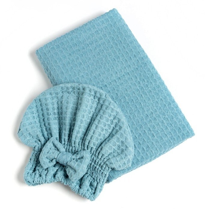 Набор для бани и ванной Этель «Вафля» полотенце 70*140 см+чалма 21*25 см, цв.синий