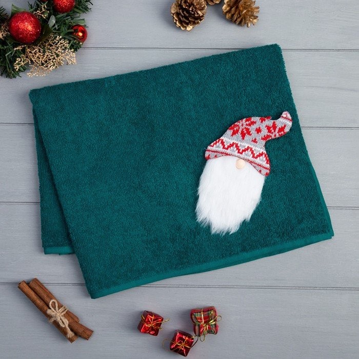 Подарочное полотенце с игрушкой Этель «Гном» 50*90 см, цв.изумрудный, 100% хл, 320г/м2