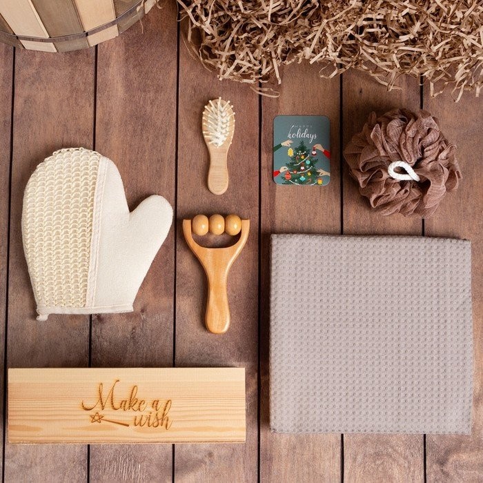 Подарочный набор новогодний Этель Make a wish полотенце 70х140см и аксессуары (4 предм)