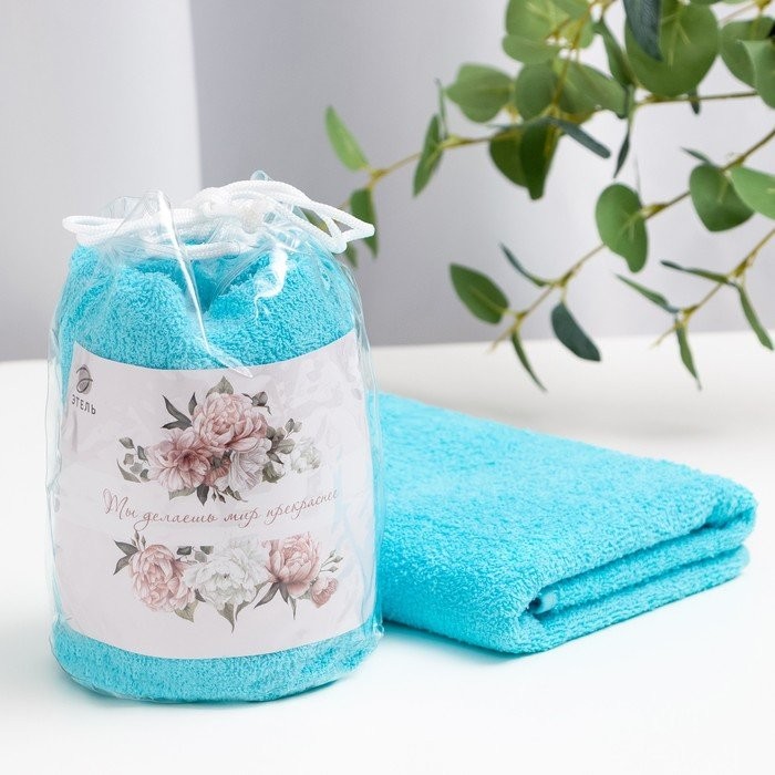 Полотенце подарочное Этель «Ты делаешь мир прекраснее» голубой, 50х90см, 100%хл, 340г/м2