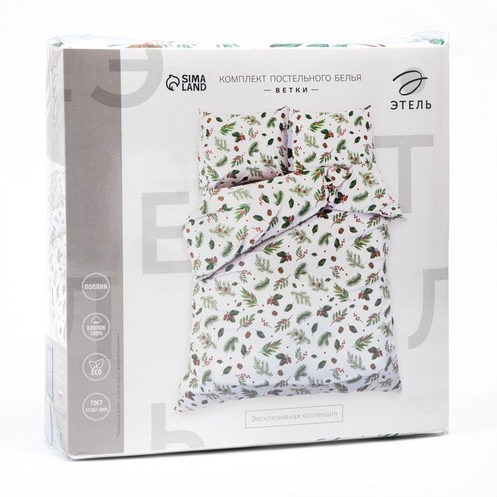 Постельное белье «Этель» Евро Ветки 200*217 см, 220*240 см, 70*70 см — 2 шт