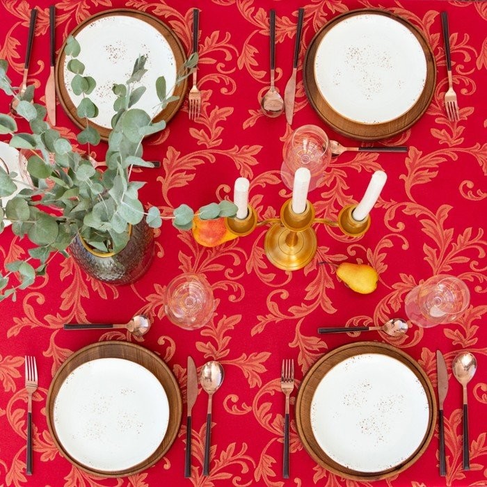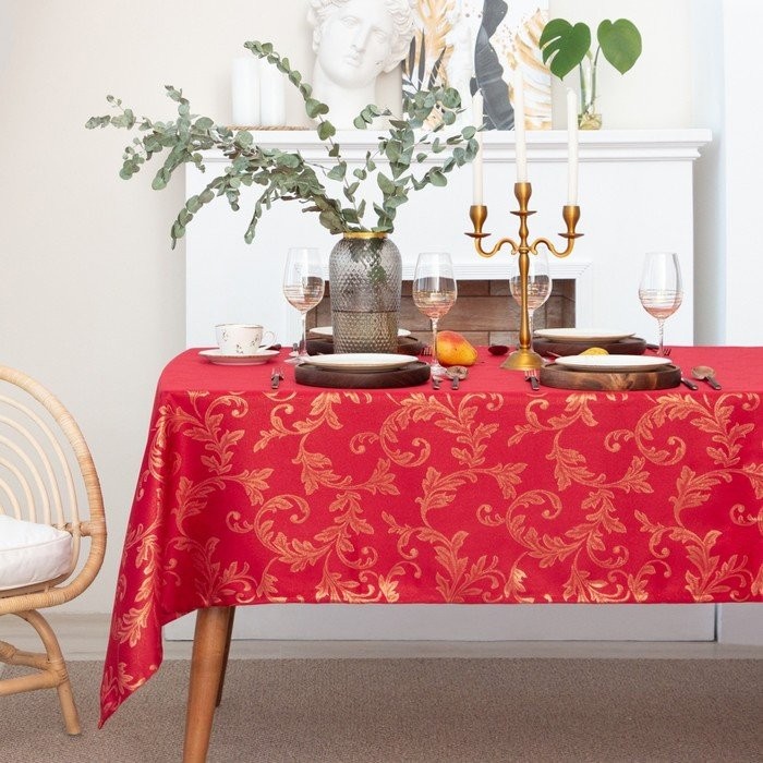 Скатерть Этель «Patterns» цвет красный, 142*283 +/-3 см, 115 ±10 гр,100% п/э