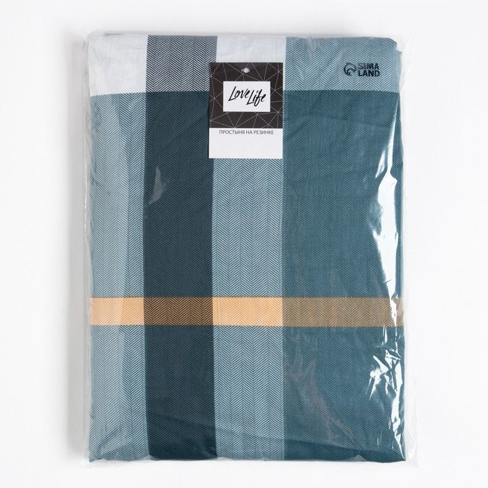 Простыня на резинке LoveLife 140*200*25см, «Клетка», 100% хлопок, сатин, 125г/м²