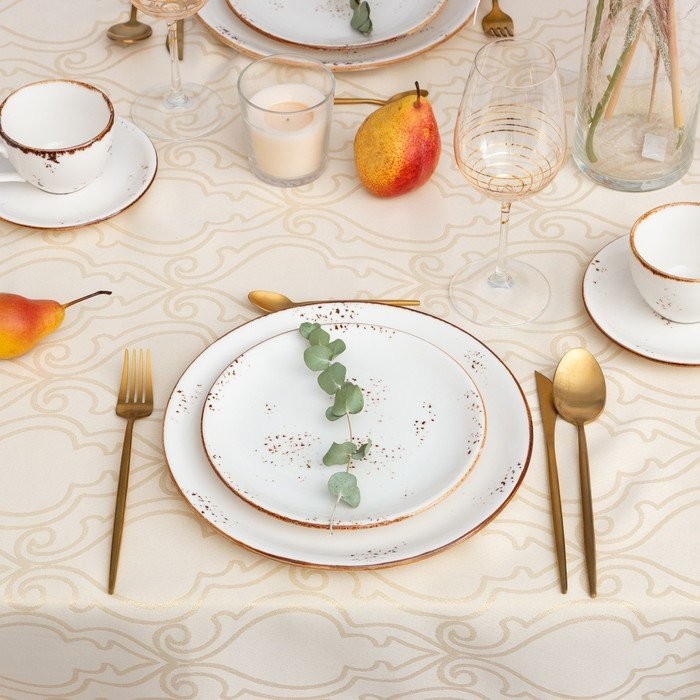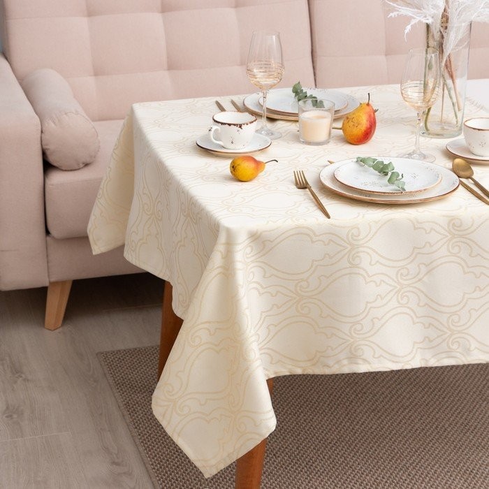 Скатерть Этель «Орнамент» цв.бежевый, 142*283 +/-3 см, 115 ±10 гр,100% п/э