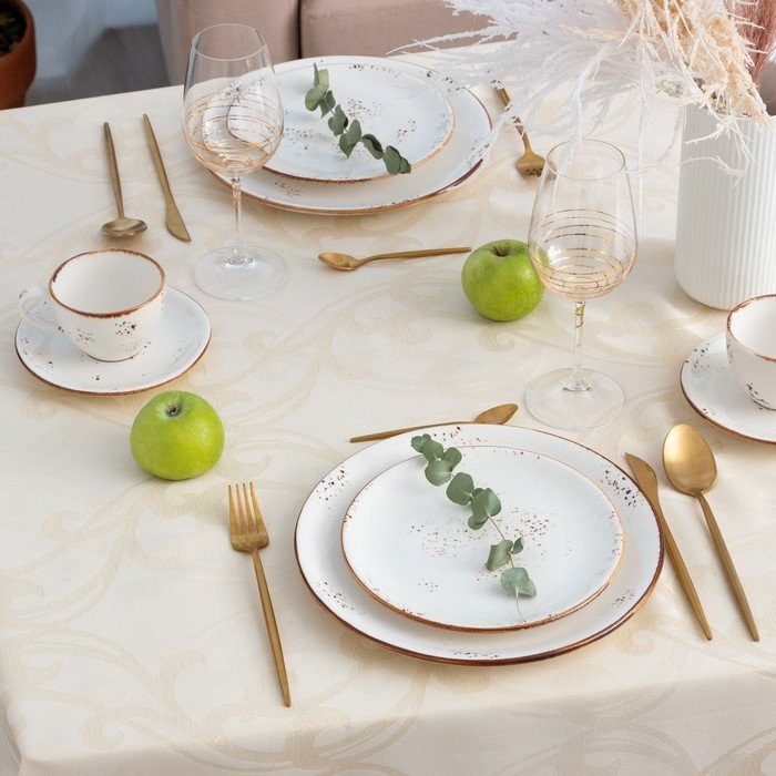 Скатерть Этель «Узор» цв.бежевый, 142*180 +/-3 см, 115 ±10 гр,100% п/э