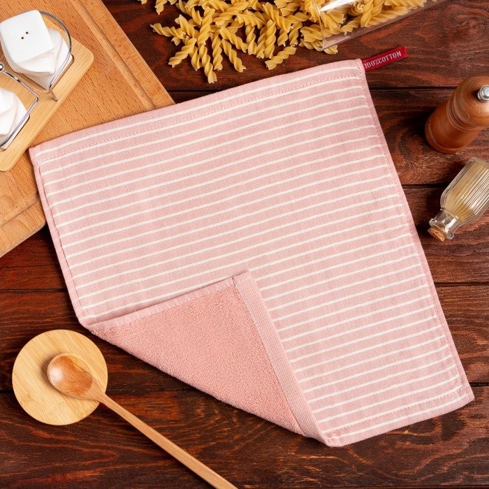 Салфетка для уборки двухсторонняя Доляна «Полоса» цв.розовый 35×35 см, 100% хлопок