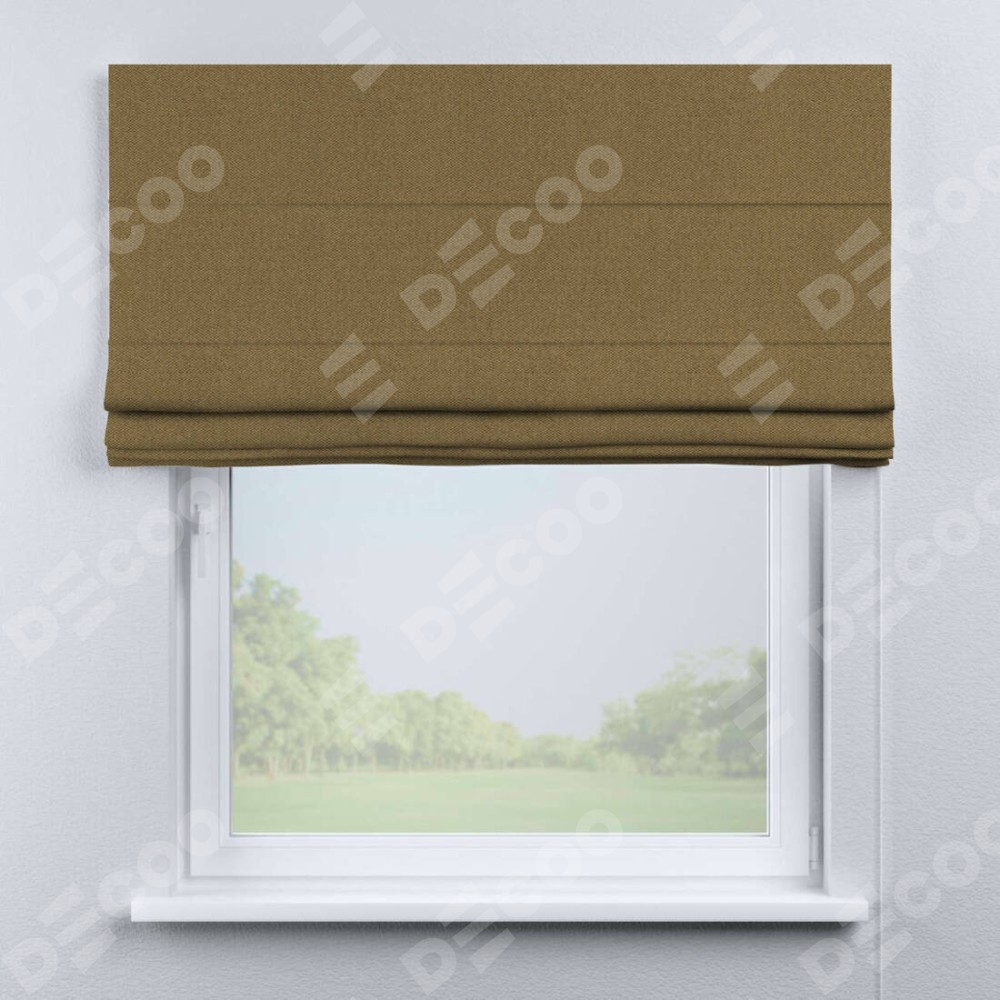 Римская штора производителя «Cortin», используется для проёма, пошита из ткани лён димаут оливковый, артикул ткани 16243. Имеет универсальный механизм и подходит для монтажа: на потолок, на стену и в нишу.