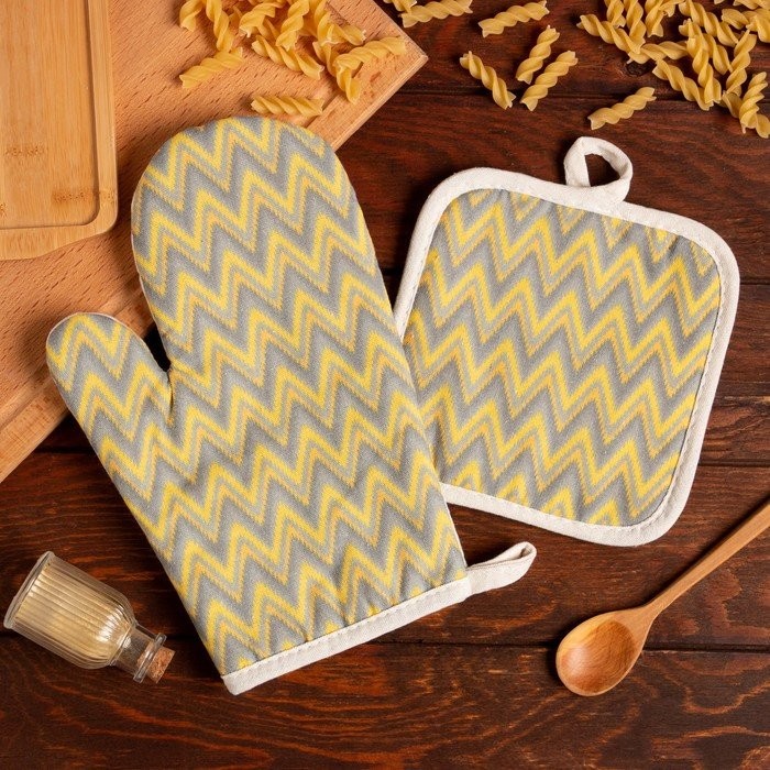 Кухонный набор (2 предмета) Доляна «Зигзаги», прихватка 17×17 см, варежка 26×16 см, 100% п/э