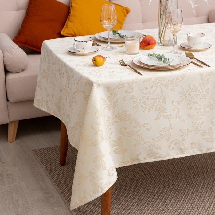 Скатерть Этель «Patterns» цвет золотой, 142*283 +/-3 см, 115 ±10 гр,100% п/э