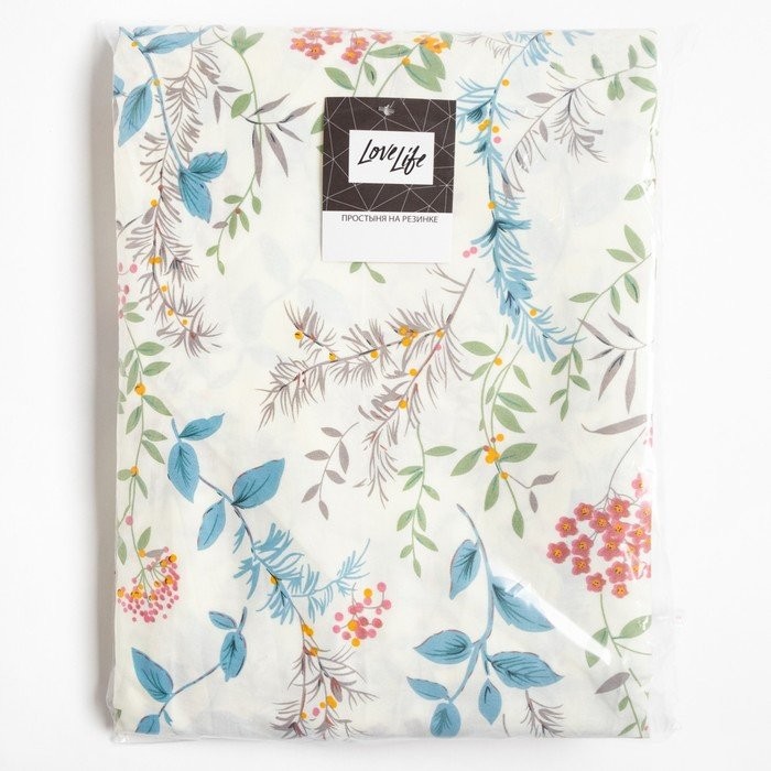 Простыня на резинке LoveLife 180*200*25см, «Flowers», 100% хлопок, сатин, 125г/м²