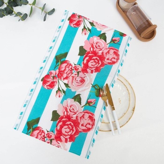 Полотенце 35×60 см, Полоса, бирюза, вафля, 160 гр/м2, хлопок 100%
