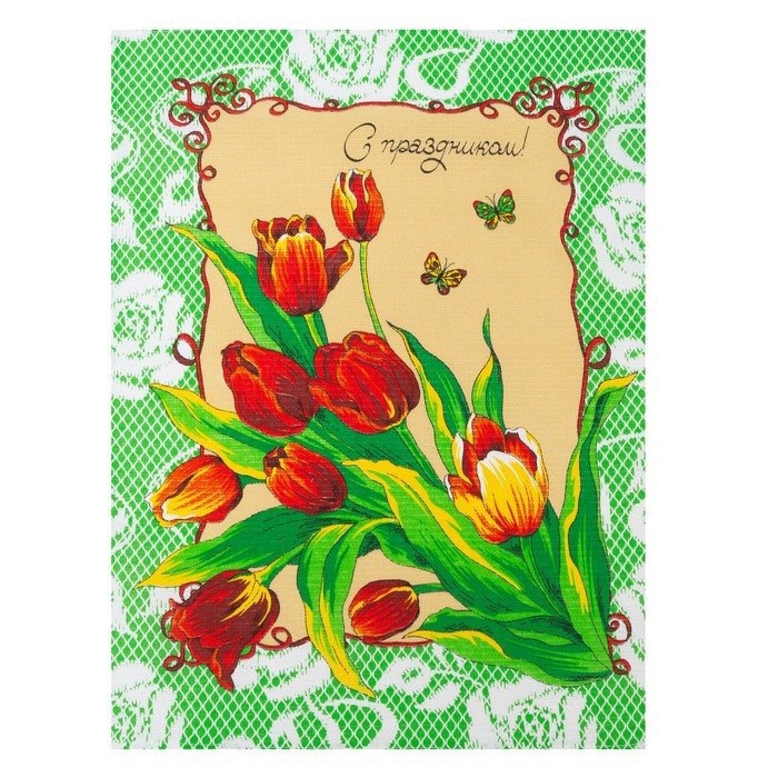 Полотенце в коробке 45×60 см, С праздником, салатовый, вафля, 160 гр/м2, хлопок 100%