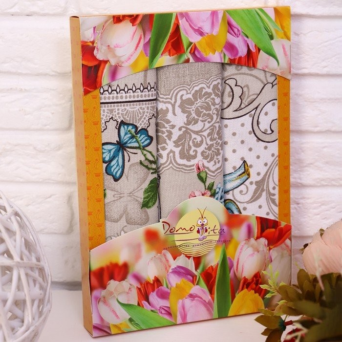 Набор полотенец в коробке «Тет-а-Тет лен " 45×60 см, 170 гр/м, хлопок 100%, рогожка,3 шт