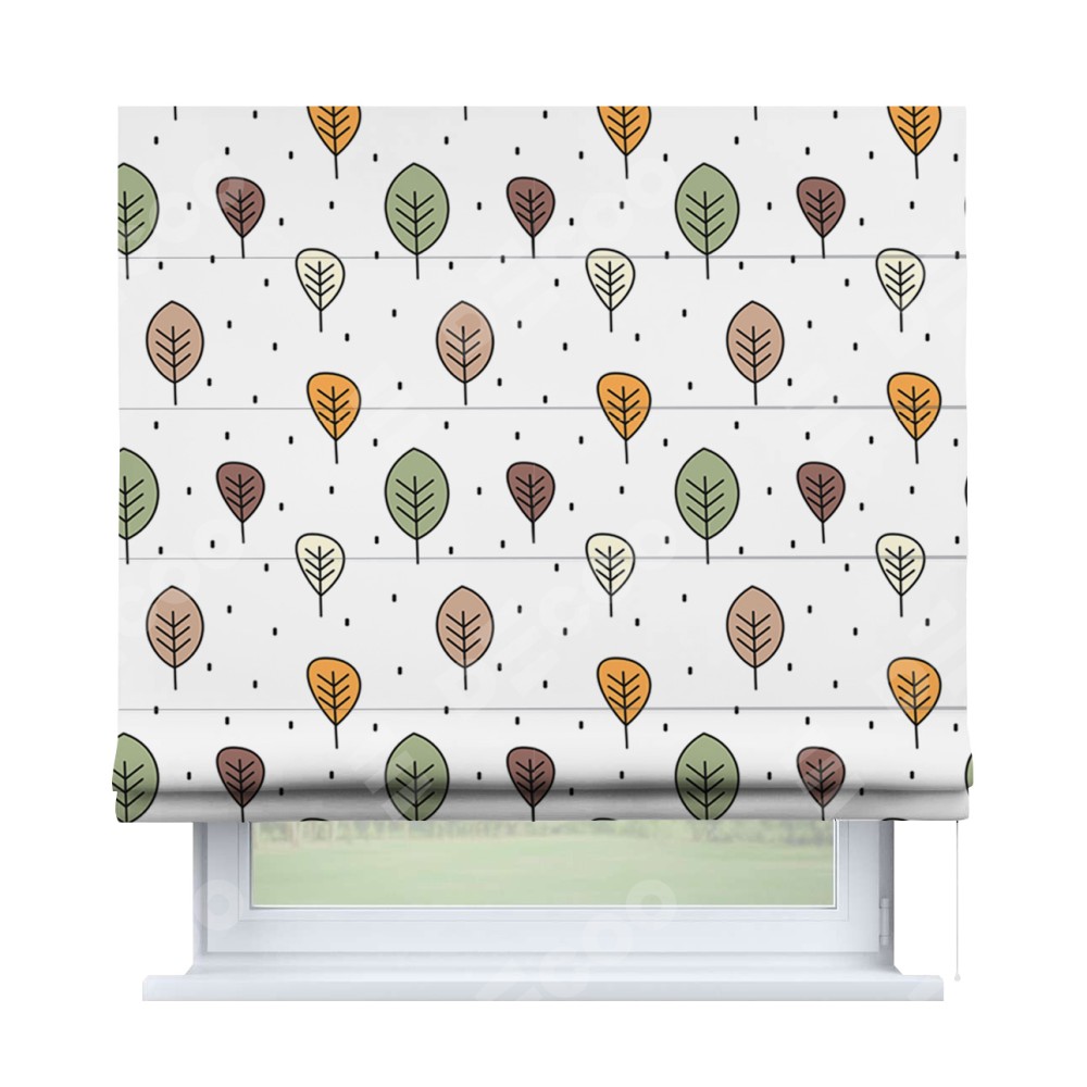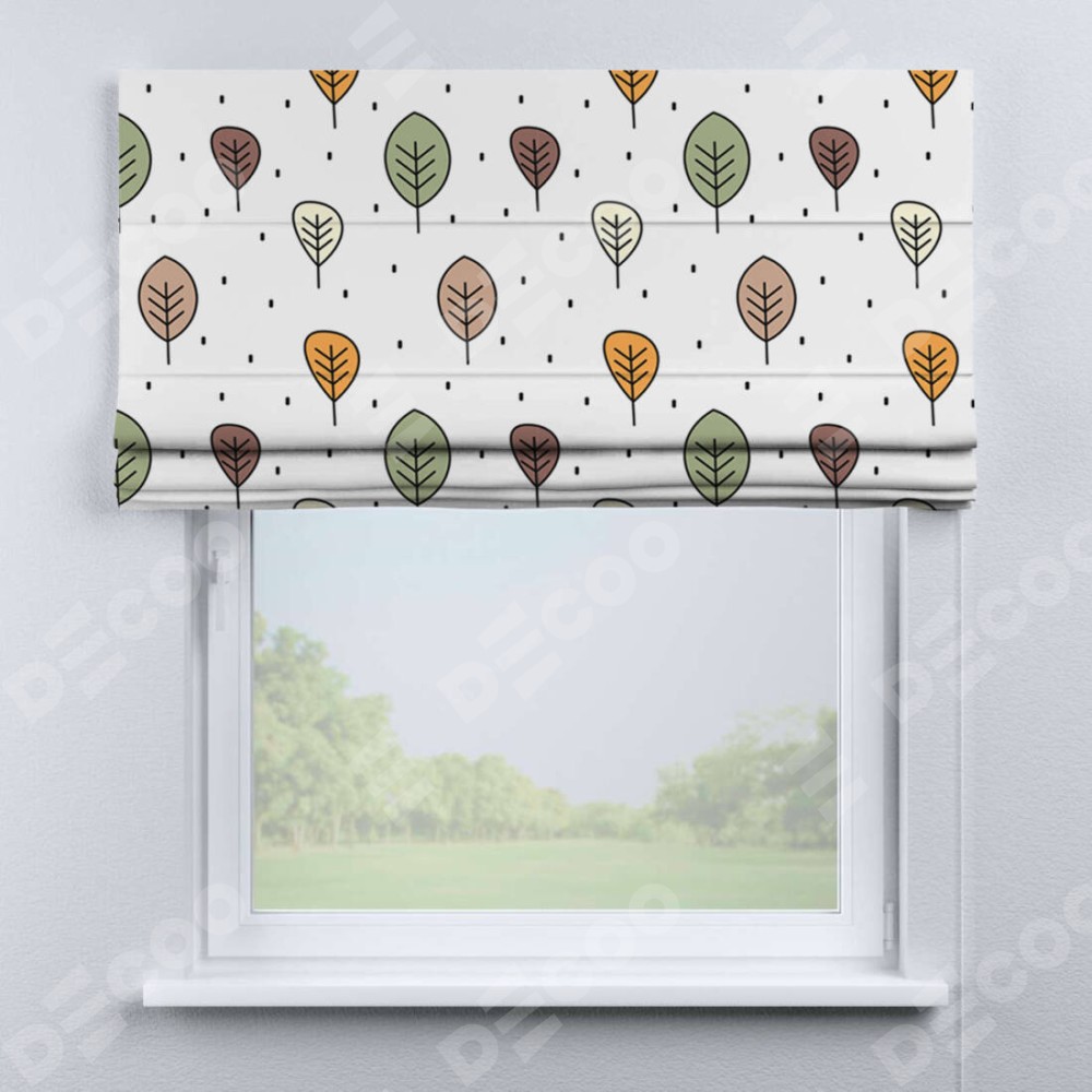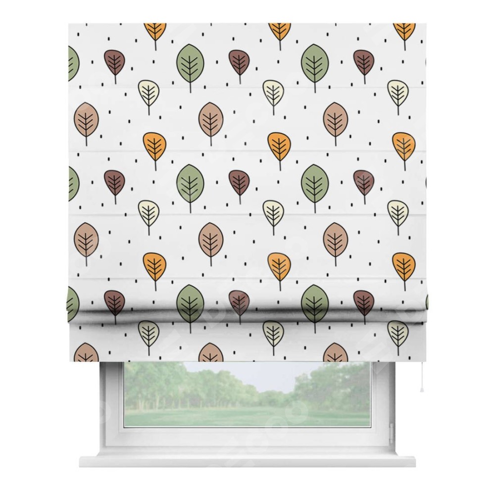 Римская штора производителя «Cortin», используется для проёма, пошита из ткани блэкаут с нанесением сублимационной печати «Простые деревья». Имеет универсальный механизм и подходит для монтажа: на потолок, на стену и в нишу.
