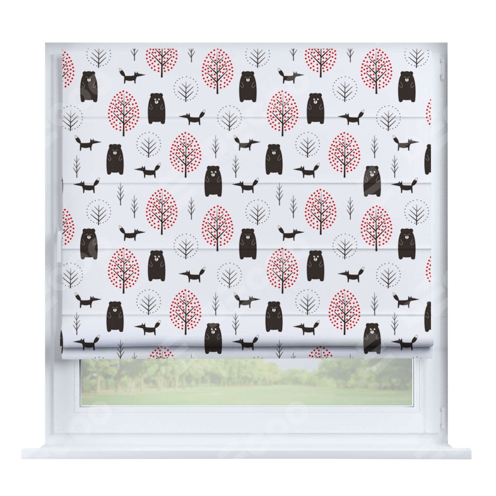 Римская штора производителя «Cortin», устанавливается на створку окна, пошита из ткани блэкаут с нанесением сублимационной печати «Сканди лес». Штора шьётся по индивидуальным размерам, для данного типа римской шторы возможная ширина от 35 до 150 см., высота до 250 см.