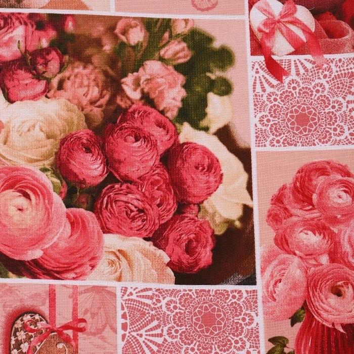 Полотенце 50×60 см, Розовый пэчворк, вафля, 170 гр/м2, хлопок 100%