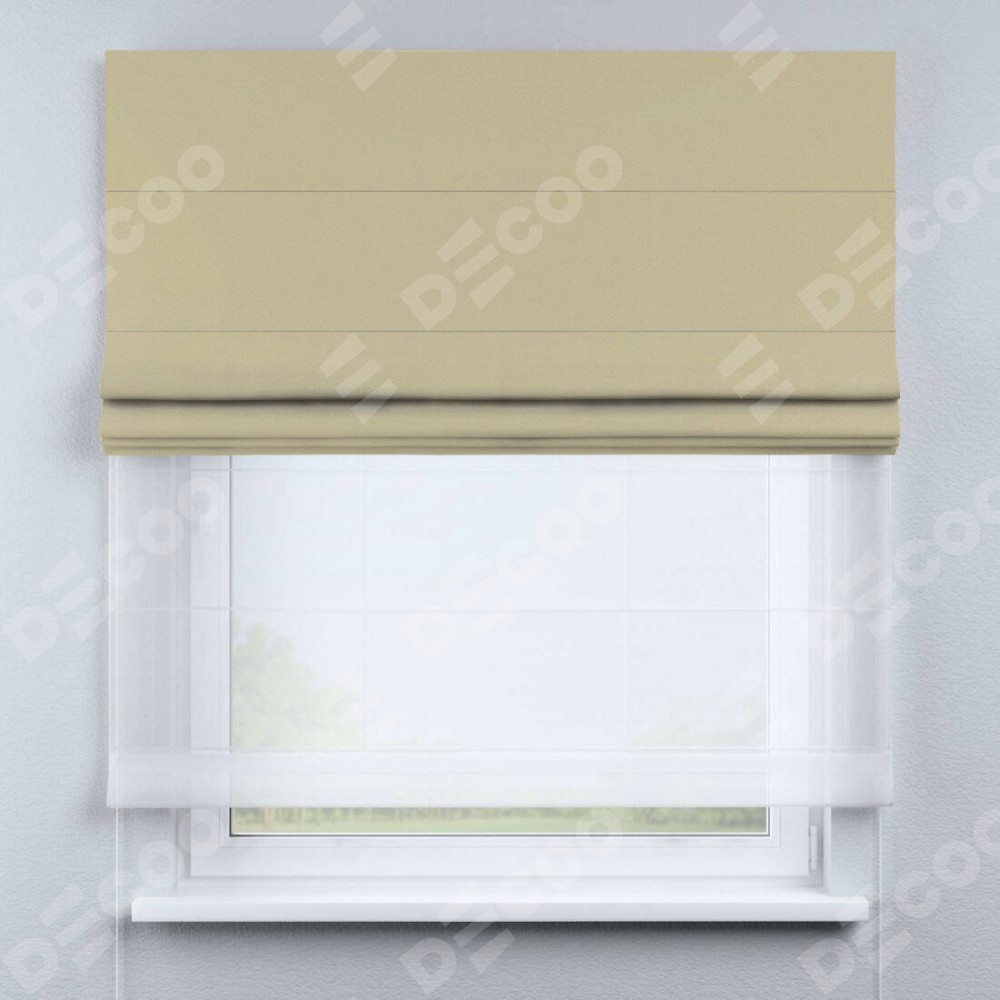 Римская штора день-ночь производителя «Cortin», используется для проёма, пошита из двух полотен, с лицевой стороны блэкаут однотонный кофейный артикул 13130, вторая ткань тюль (по стандарту комплектуется тюль белого цвета артикул V-01). Имеет универсальный механизм и подходит для монтажа: на потолок, на стену и в нишу.