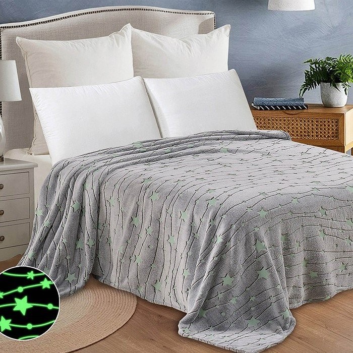 Плед светящийся 150×200 см «Звёзды», велсофт 260г/м