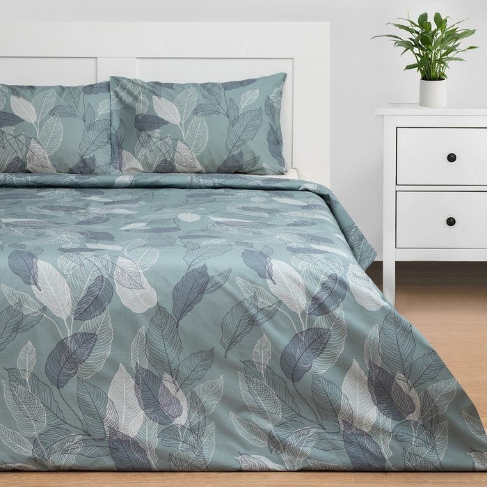 Постельное бельё Этель 1,5 сп Mint leaves, пододеяльник 143×215 см, наволочки 50×70 см 2 шт, 100% хлопок