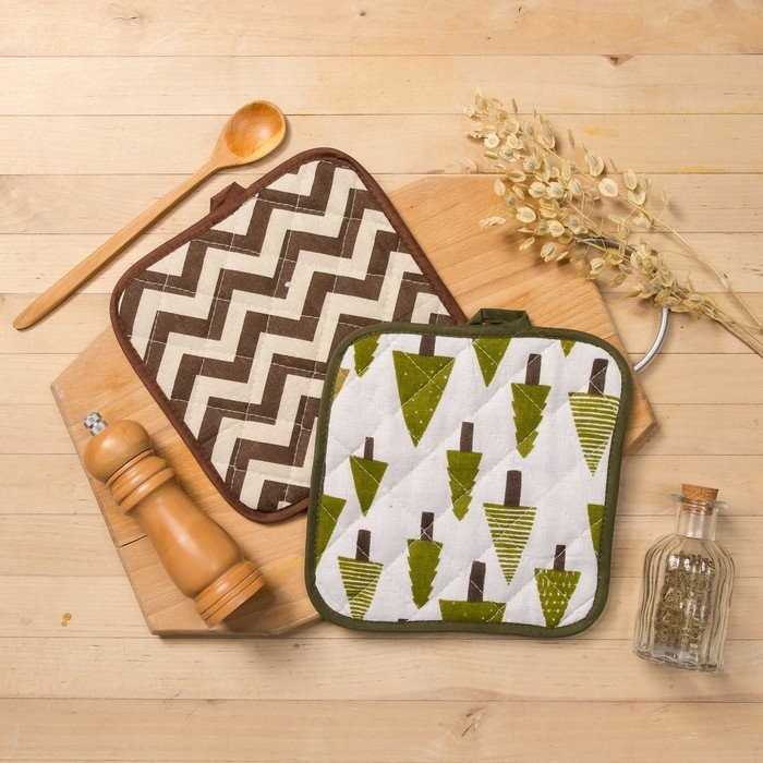 Набор Доляна, прихватка 2шт Хвойный лес/Зигзаг корич, 100%пэ, рогожка 200 гр/м