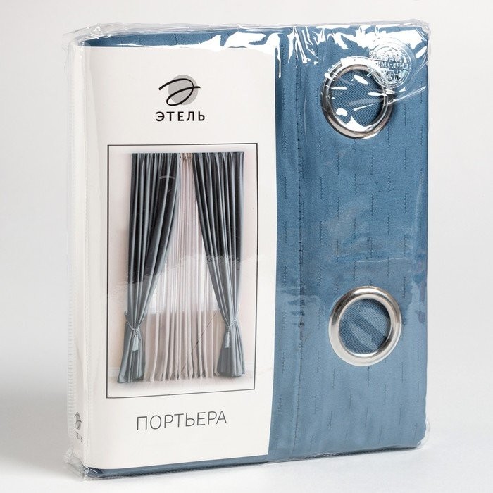 Штора портьерная Этель «Штрихи» цв.синий,на люверсах 130*300 см, 100% п/э