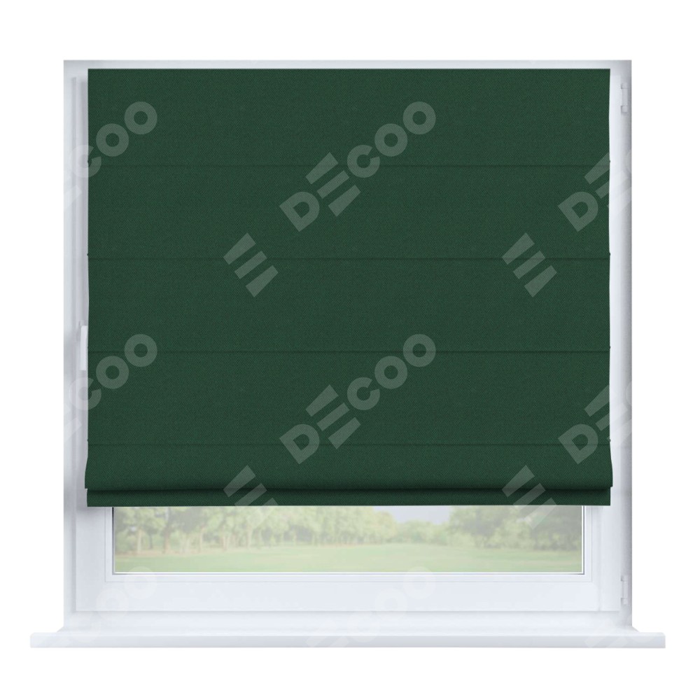 Римская штора производителя «Cortin», устанавливается на створку окна, пошита из ткани лён димаут тёмно-зелёный, артикул 16246. Штора шьётся по индивидуальным размерам, для данного типа римской шторы возможная ширина от 35 до 150 см., высота до 250 см.