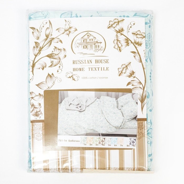 Постельное бельё 1,5сп Русский дом «Бабочки синий» 145×215, 150×215, 70х70см 2 шт, бязь 120г/м